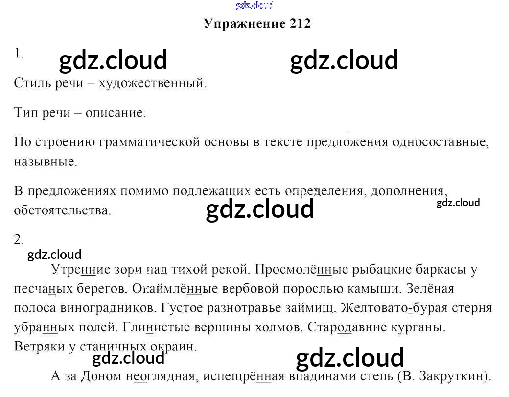 Ответ на задание 212 Учебник Русский язык за 8 (восьмой) класс Мурина, Игнатович, Жадейко 2018 ФГОС онлайн и без номера телефона.
