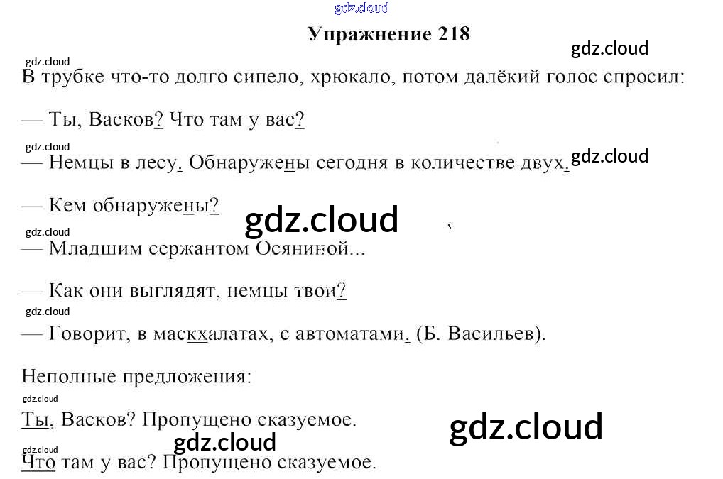 Ответ на задание 218 Учебник Русский язык за 8 (восьмой) класс Мурина, Игнатович, Жадейко 2018 ФГОС онлайн и без номера телефона.