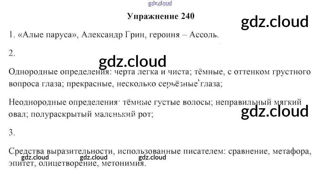 Ответ на задание 240 Учебник Русский язык за 8 (восьмой) класс Мурина, Игнатович, Жадейко 2018 ФГОС онлайн и без номера телефона.