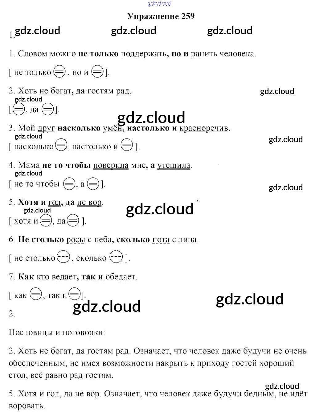 Ответ на задание 259 Учебник Русский язык за 8 (восьмой) класс Мурина, Игнатович, Жадейко 2018 ФГОС онлайн и без номера телефона.