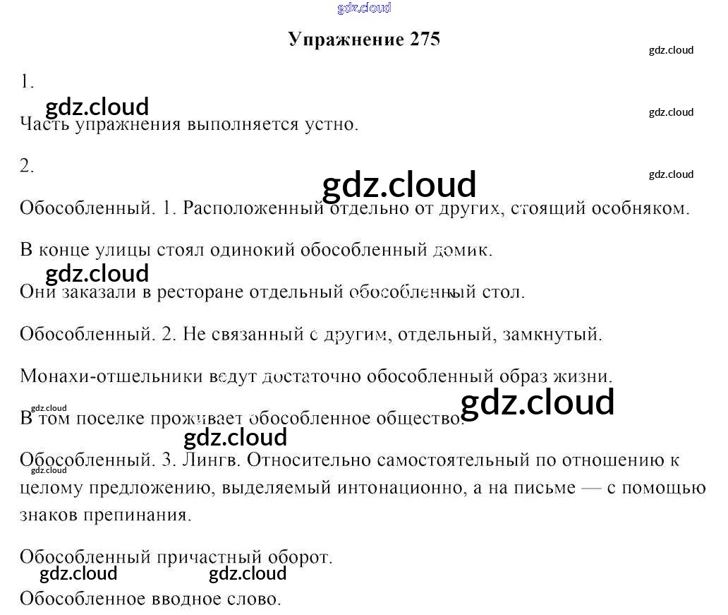 Ответ на задание 275 Учебник Русский язык за 8 (восьмой) класс Мурина, Игнатович, Жадейко 2018 ФГОС онлайн и без номера телефона.