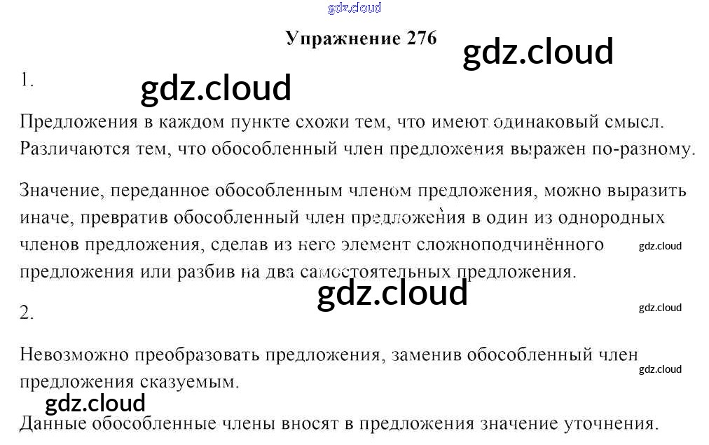 Ответ на задание 276 Учебник Русский язык за 8 (восьмой) класс Мурина, Игнатович, Жадейко 2018 ФГОС онлайн и без номера телефона.