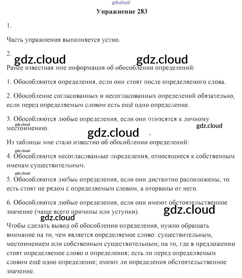 Ответ на задание 283 Учебник Русский язык за 8 (восьмой) класс Мурина, Игнатович, Жадейко 2018 ФГОС онлайн и без номера телефона.