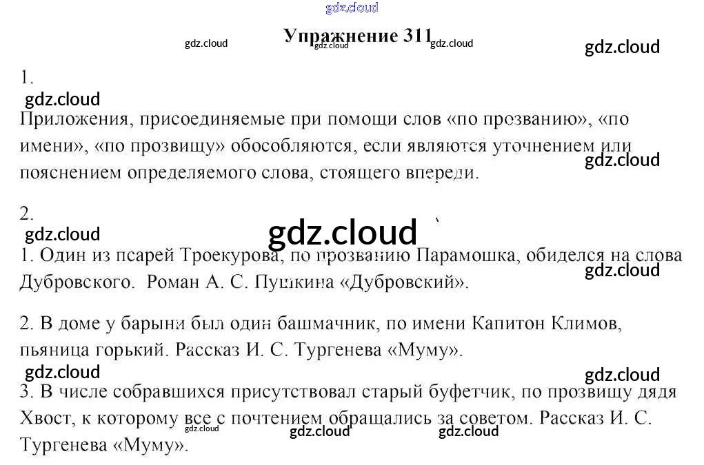 Ответ на задание 311 Учебник Русский язык за 8 (восьмой) класс Мурина, Игнатович, Жадейко 2018 ФГОС онлайн и без номера телефона.