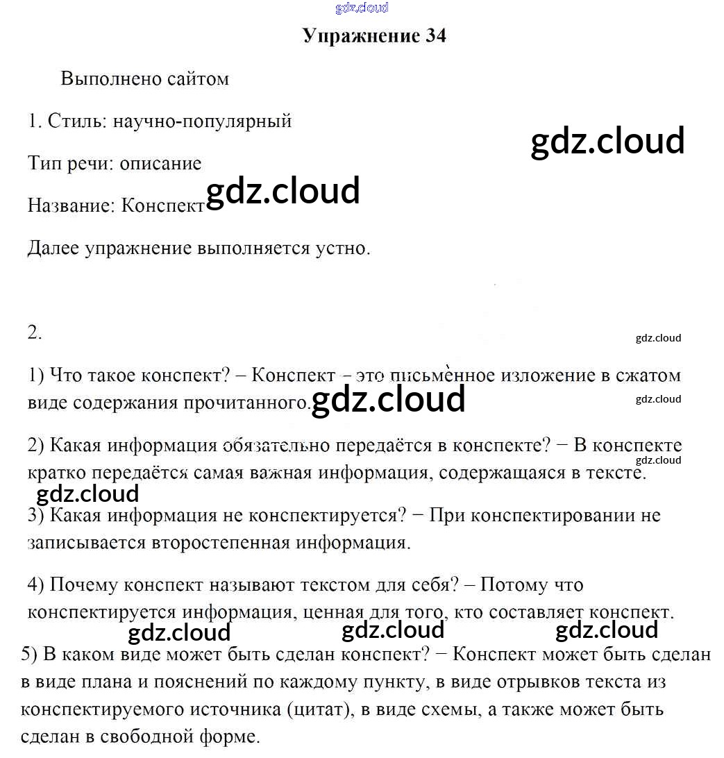 Ответ на задание 34 Учебник Русский язык за 8 (восьмой) класс Мурина, Игнатович, Жадейко 2018 ФГОС онлайн и без номера телефона.