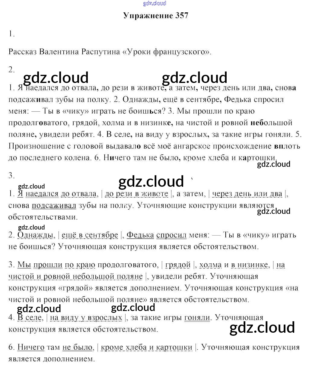 Ответ на задание 357 Учебник Русский язык за 8 (восьмой) класс Мурина, Игнатович, Жадейко 2018 ФГОС онлайн и без номера телефона.