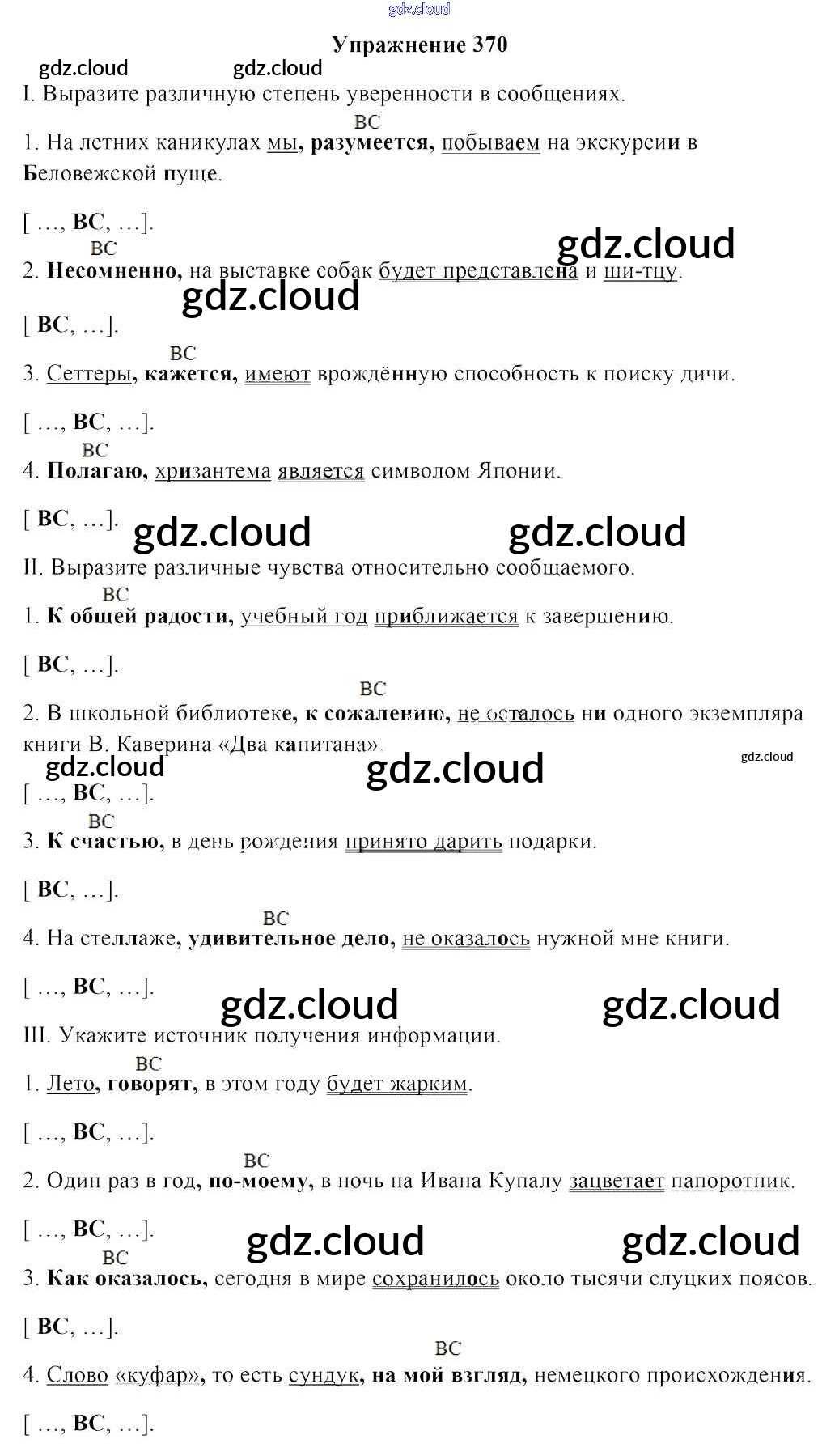 Ответ на задание 370 Учебник Русский язык за 8 (восьмой) класс Мурина, Игнатович, Жадейко 2018 ФГОС онлайн и без номера телефона.