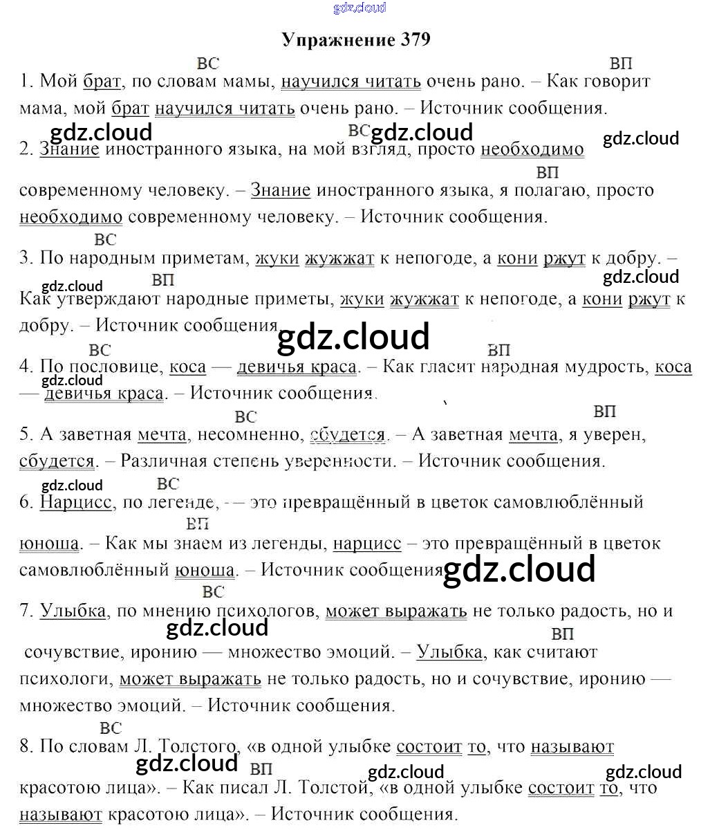 Ответ на задание 379 Учебник Русский язык за 8 (восьмой) класс Мурина, Игнатович, Жадейко 2018 ФГОС онлайн и без номера телефона.