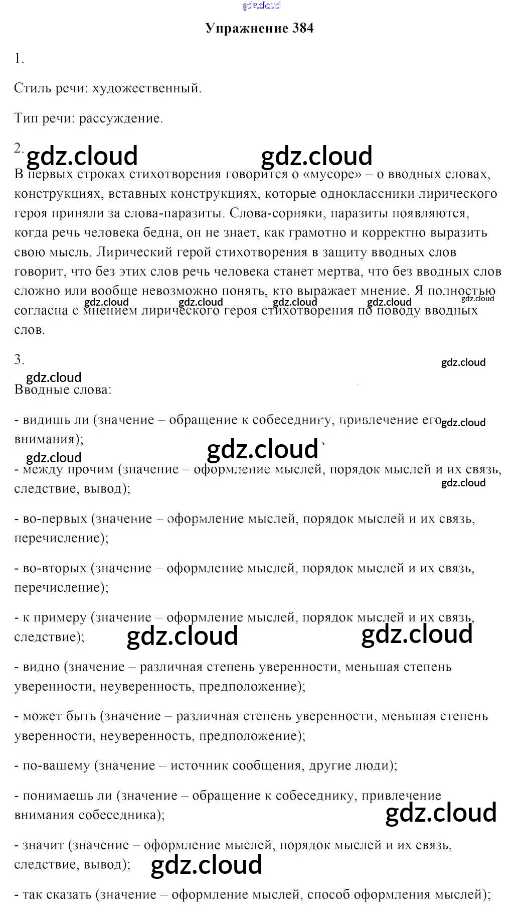 Ответ на задание 384 Учебник Русский язык за 8 (восьмой) класс Мурина, Игнатович, Жадейко 2018 ФГОС онлайн и без номера телефона.