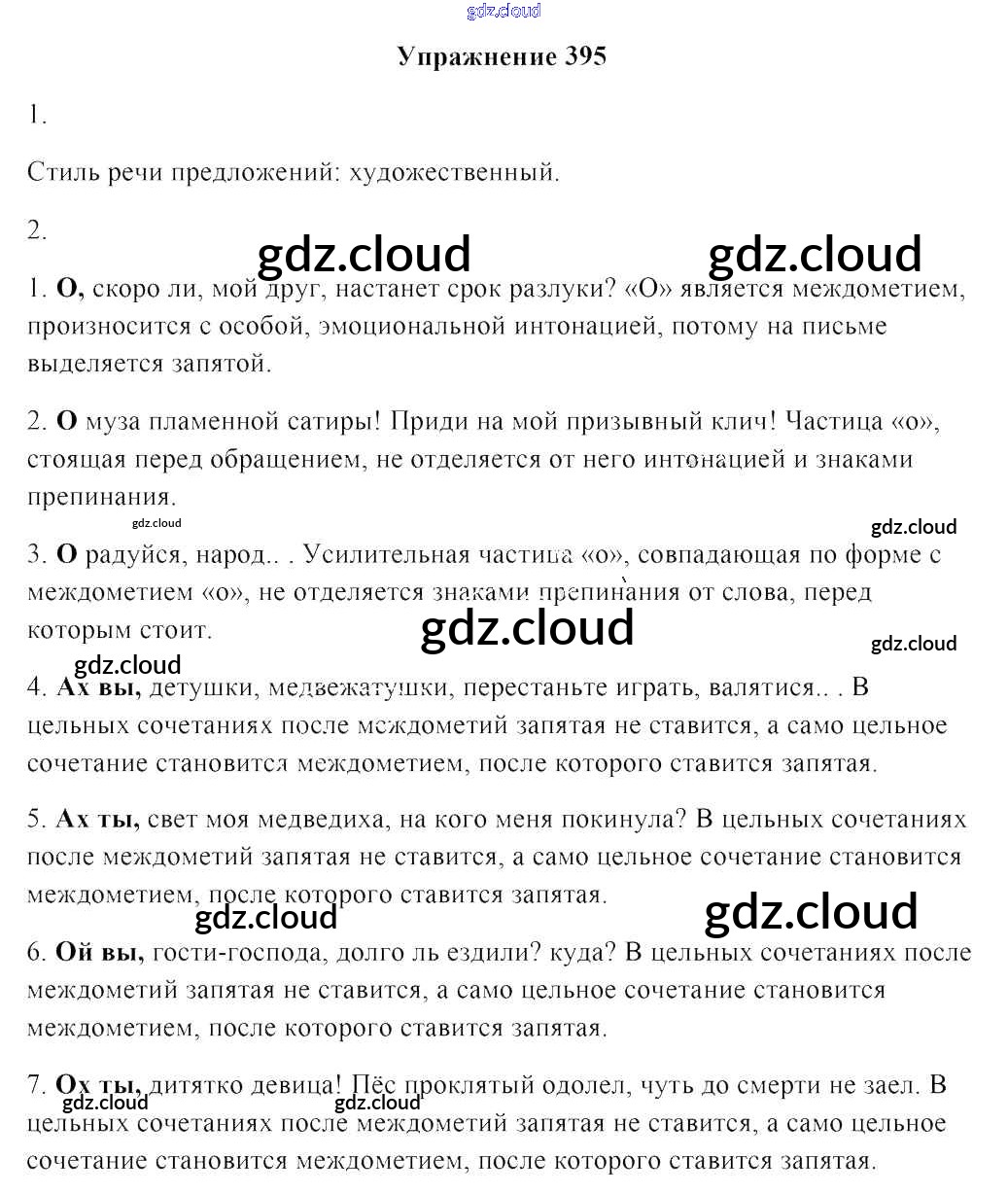 Ответ на задание 395 Учебник Русский язык за 8 (восьмой) класс Мурина, Игнатович, Жадейко 2018 ФГОС онлайн и без номера телефона.