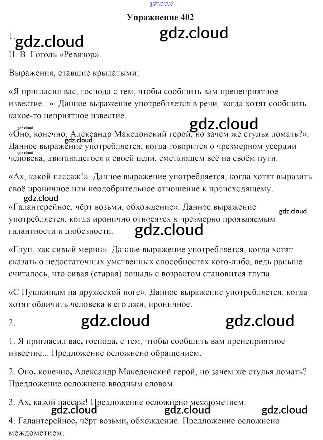 Ответ на задание 402 Учебник Русский язык за 8 (восьмой) класс Мурина, Игнатович, Жадейко 2018 ФГОС онлайн и без номера телефона.