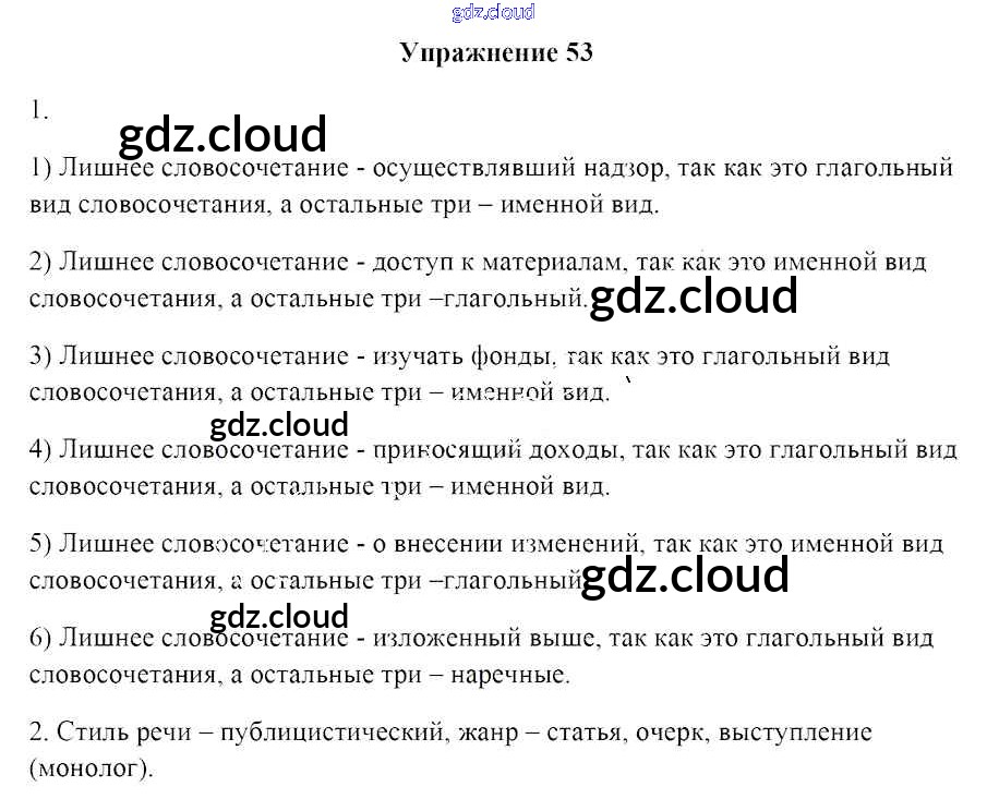 Ответ на задание 53 Учебник Русский язык за 8 (восьмой) класс Мурина, Игнатович, Жадейко 2018 ФГОС онлайн и без номера телефона.