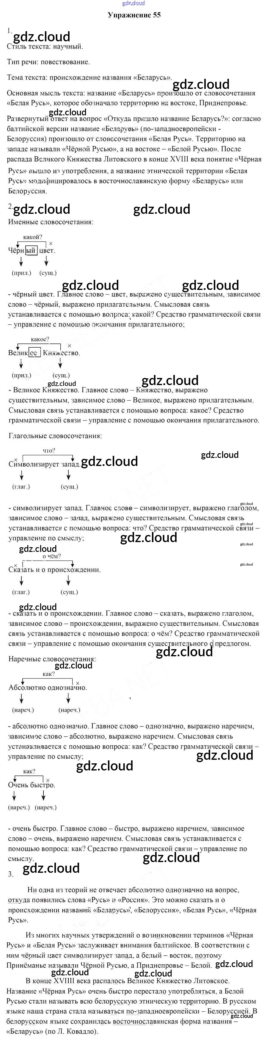 Ответ на задание 55 Учебник Русский язык за 8 (восьмой) класс Мурина, Игнатович, Жадейко 2018 ФГОС онлайн и без номера телефона.