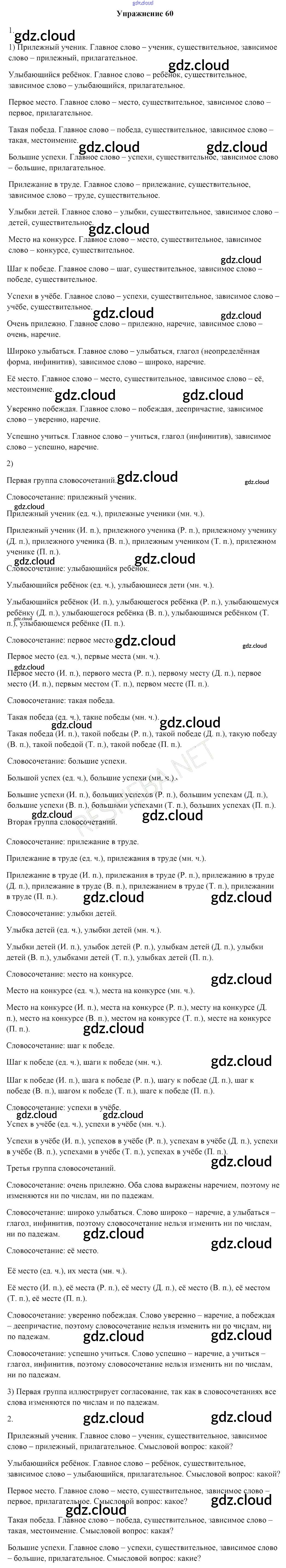 Ответ на задание 60 Учебник Русский язык за 8 (восьмой) класс Мурина, Игнатович, Жадейко 2018 ФГОС онлайн и без номера телефона.
