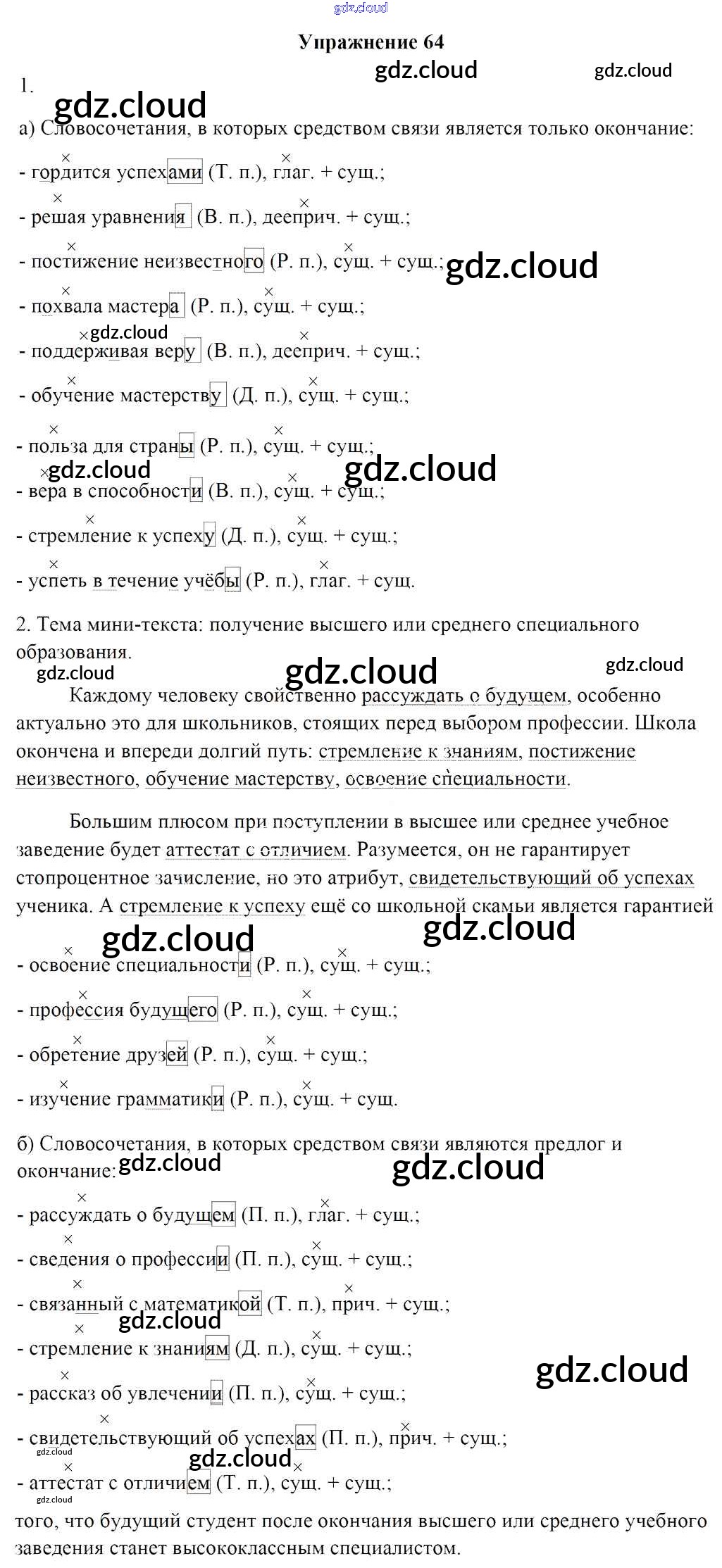 Ответ на задание 64 Учебник Русский язык за 8 (восьмой) класс Мурина, Игнатович, Жадейко 2018 ФГОС онлайн и без номера телефона.