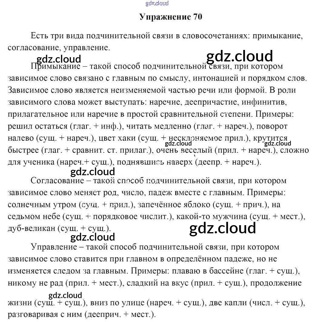 Ответ на задание 70 Учебник Русский язык за 8 (восьмой) класс Мурина, Игнатович, Жадейко 2018 ФГОС онлайн и без номера телефона.