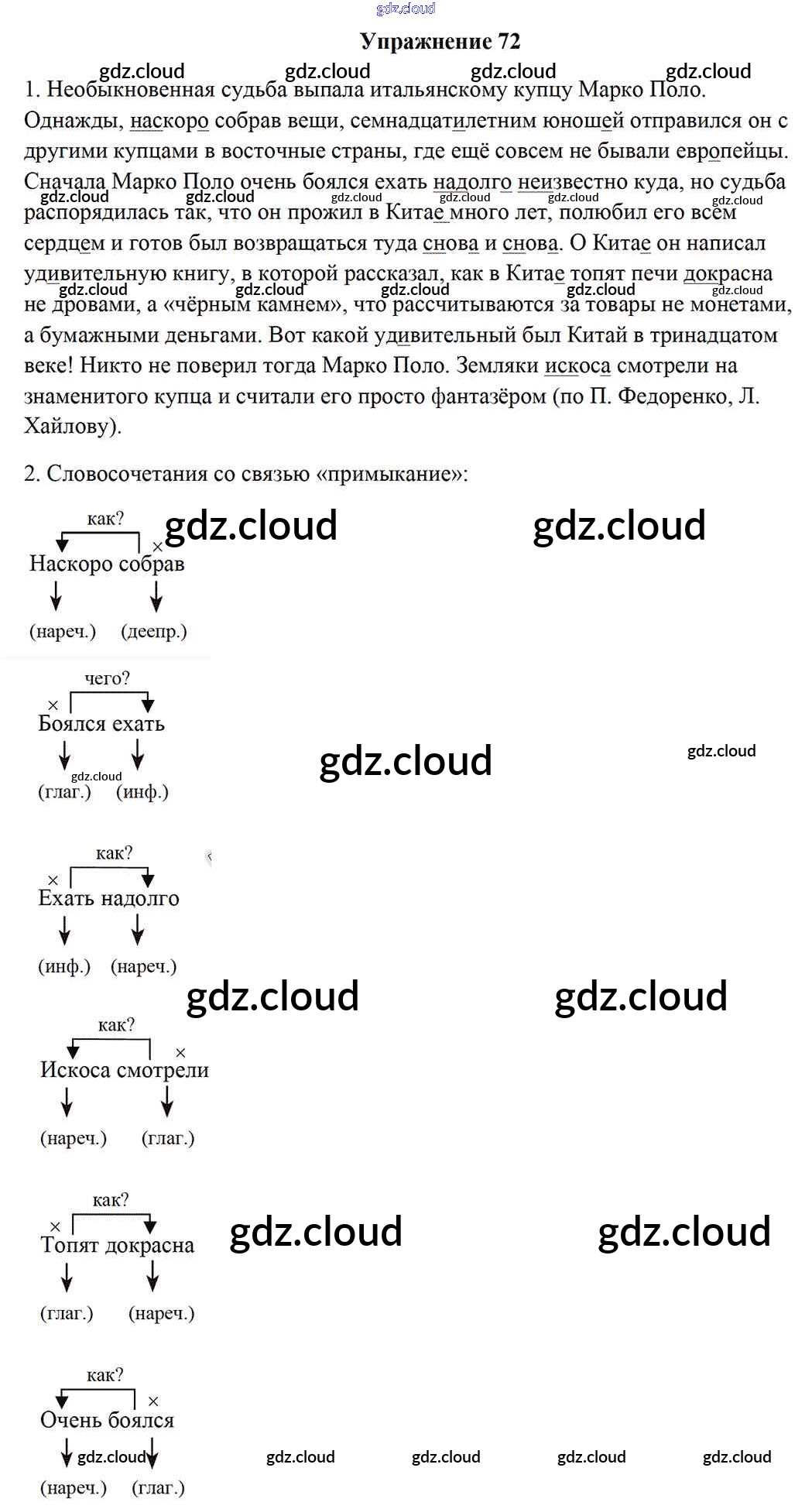 Ответ на задание 72 Учебник Русский язык за 8 (восьмой) класс Мурина, Игнатович, Жадейко 2018 ФГОС онлайн и без номера телефона.