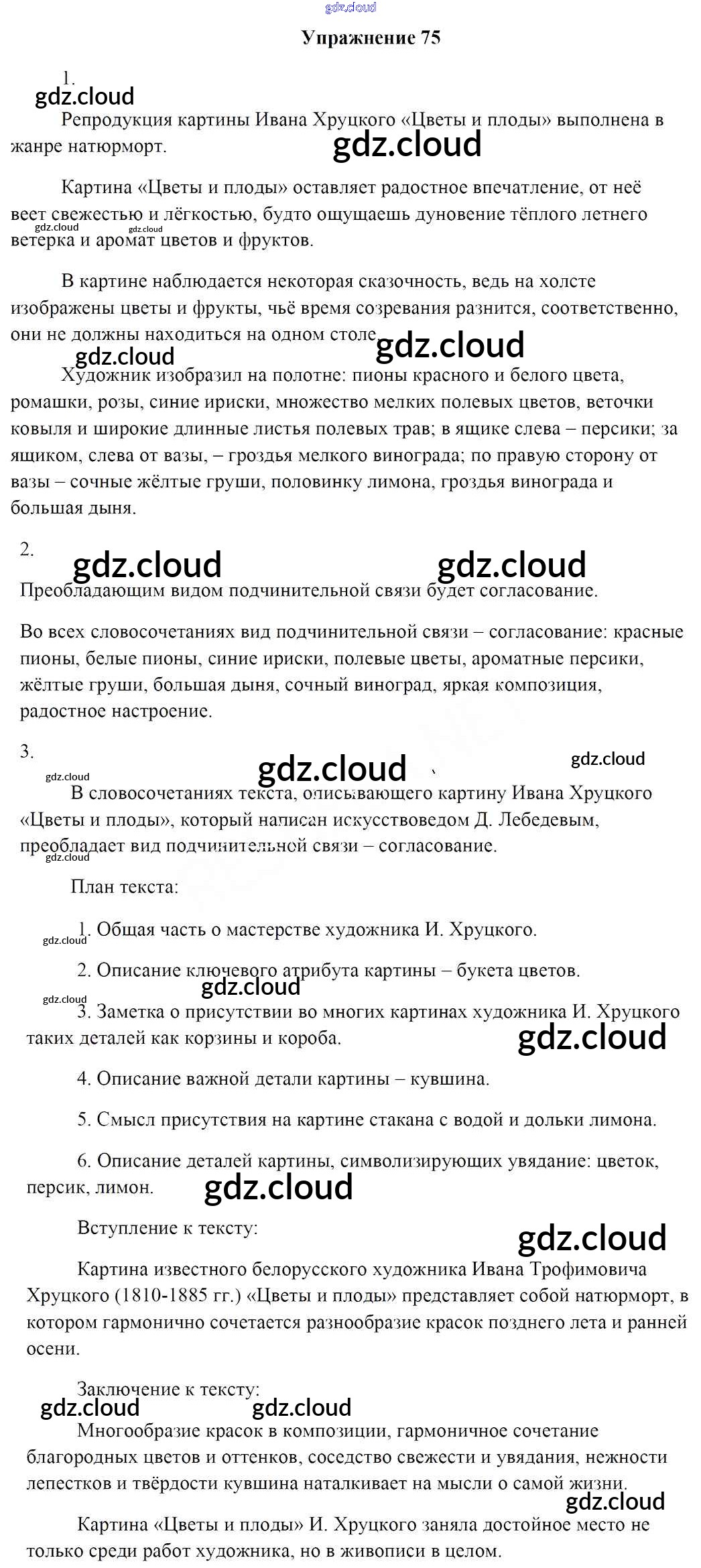 Ответ на задание 75 Учебник Русский язык за 8 (восьмой) класс Мурина, Игнатович, Жадейко 2018 ФГОС онлайн и без номера телефона.