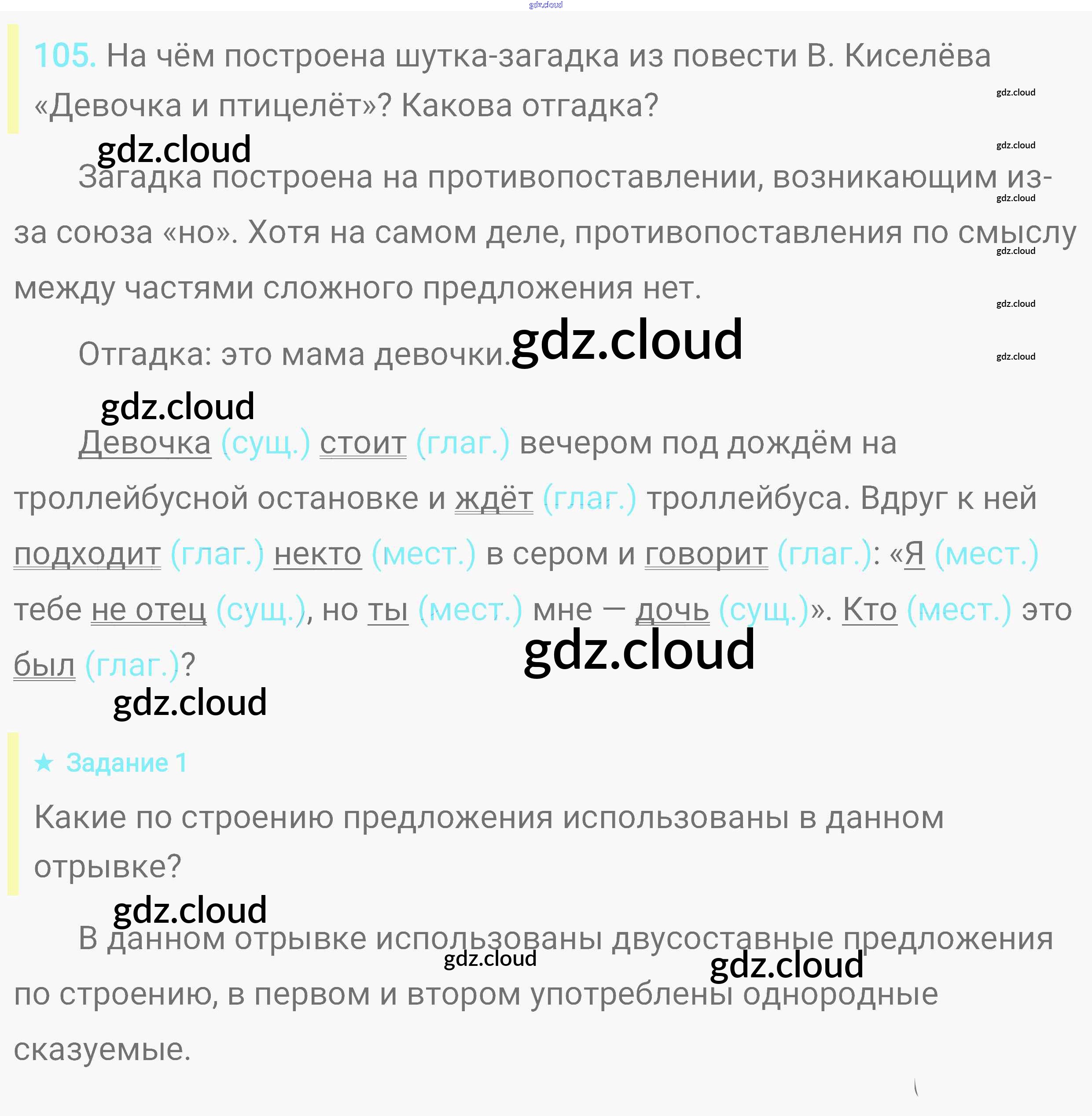 Ответ на задание 105 Практика Русский язык за 8 (восьмой) класс Пичугов, Еремеева, Купалова, Леденева Вертикаль 2016, 2022