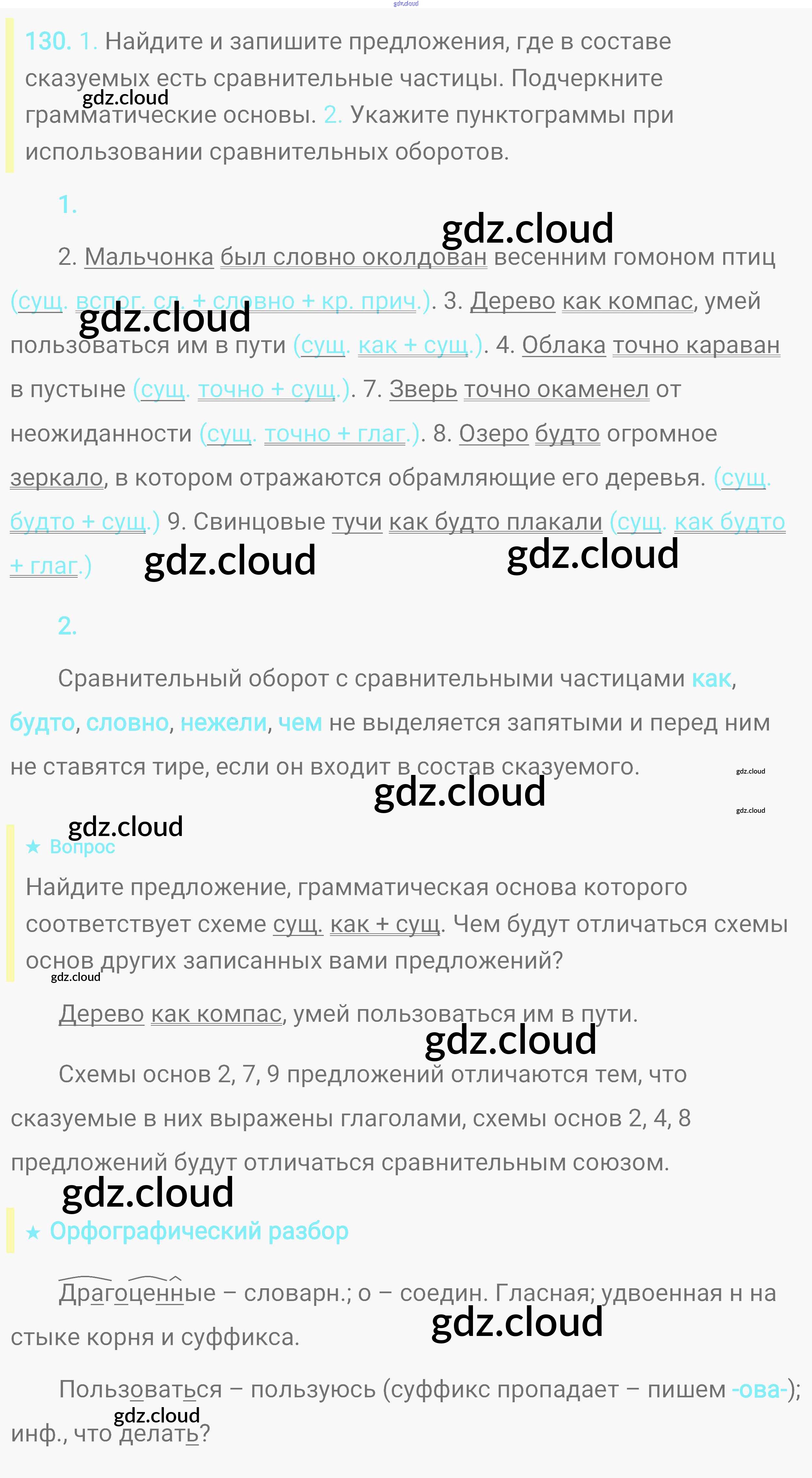 Ответ на задание 130 Практика Русский язык за 8 (восьмой) класс Пичугов, Еремеева, Купалова, Леденева Вертикаль 2016, 2022