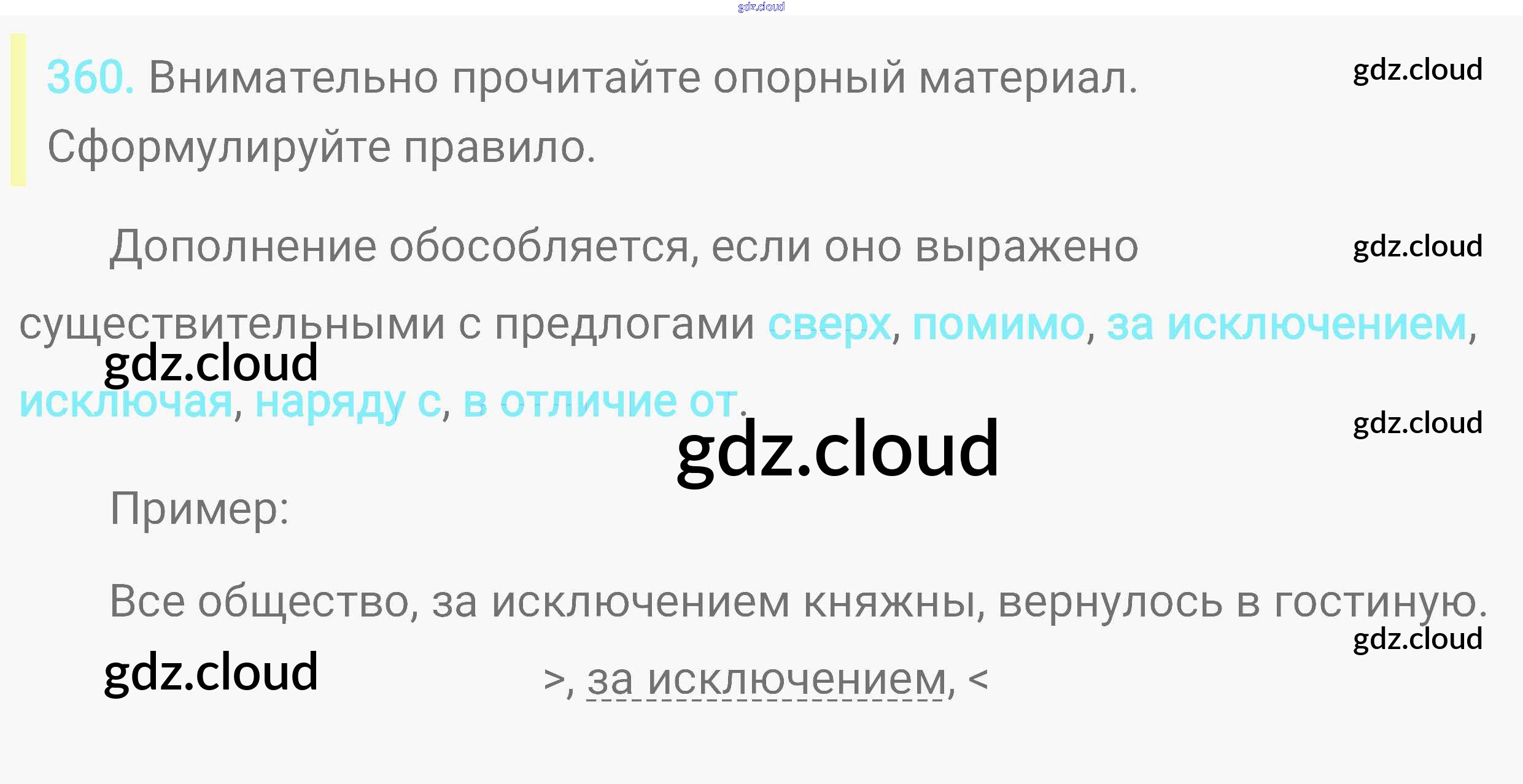 Ответ на задание 360 Практика Русский язык за 8 (восьмой) класс Пичугов, Еремеева, Купалова, Леденева Вертикаль 2016, 2022