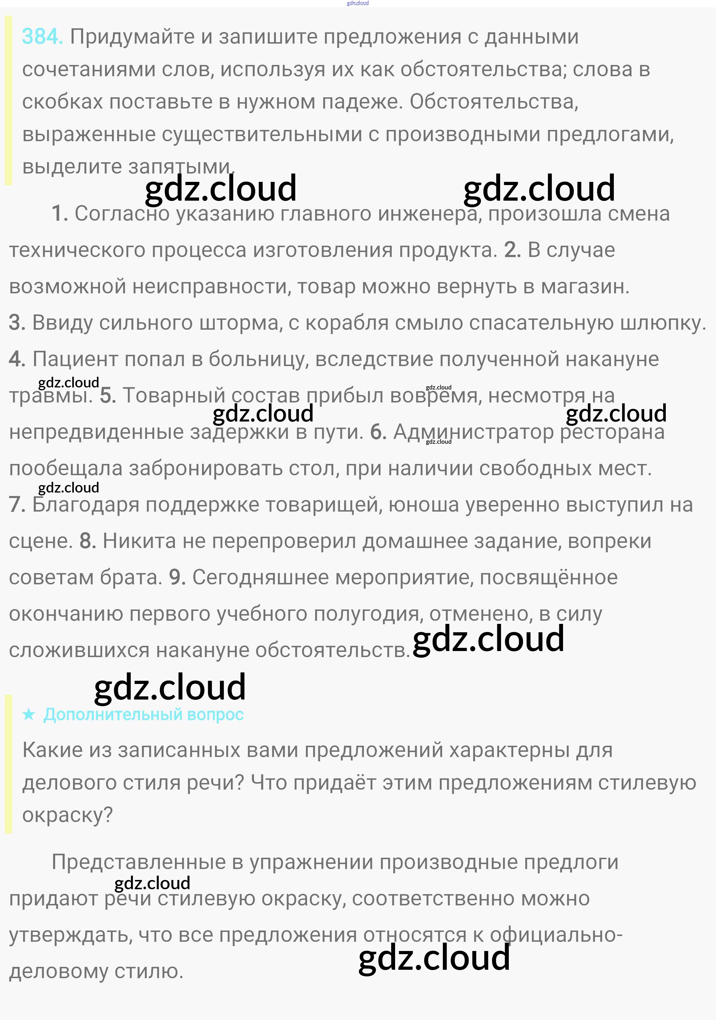 Ответ на задание 384 Практика Русский язык за 8 (восьмой) класс Пичугов, Еремеева, Купалова, Леденева Вертикаль 2016, 2022