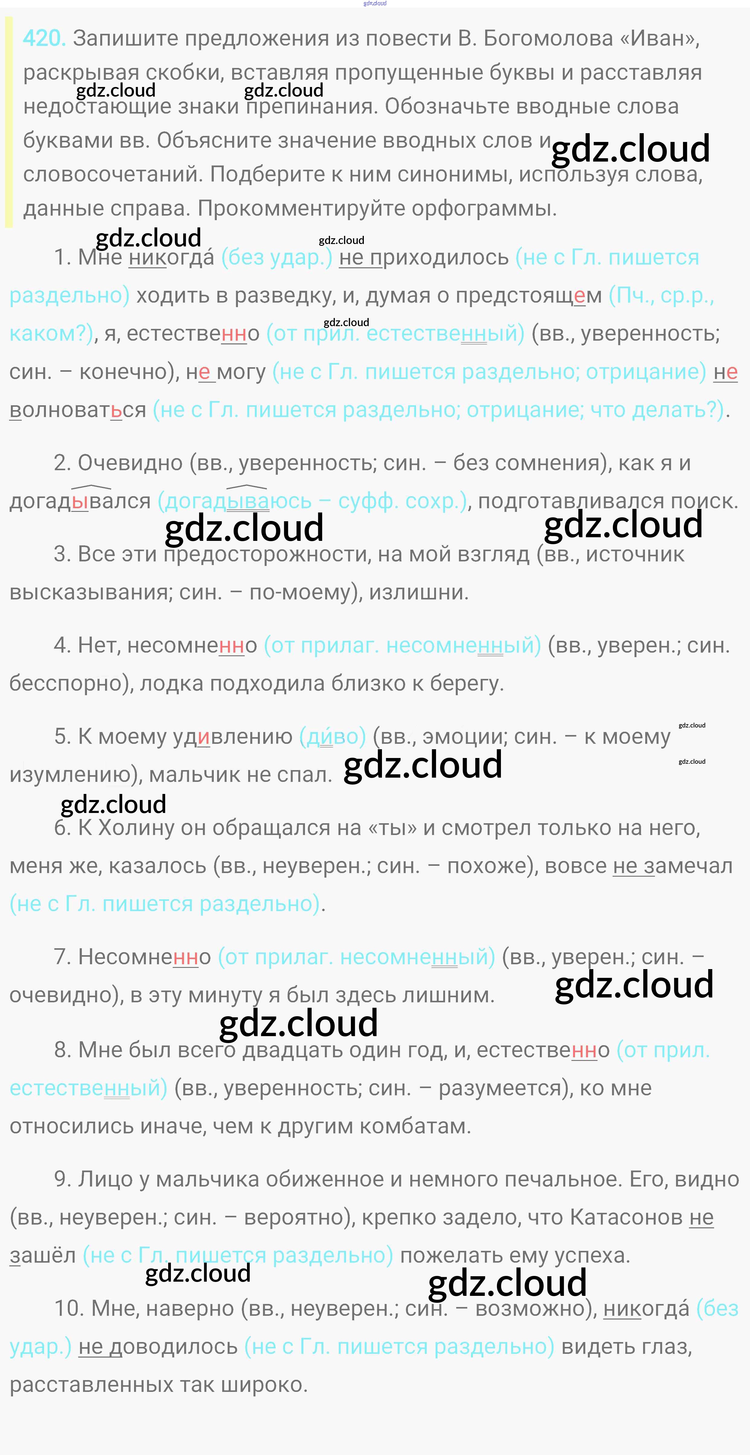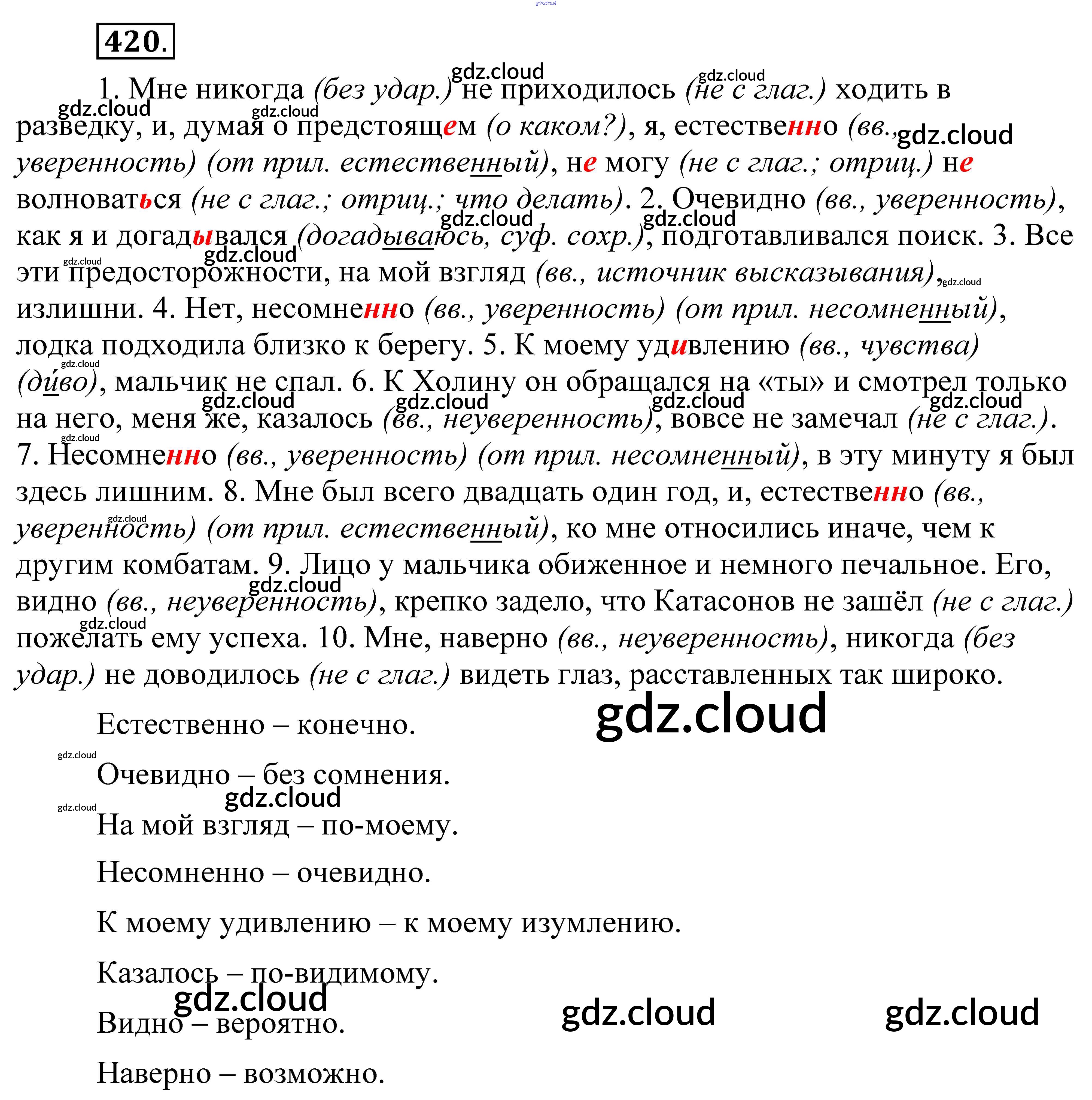 Ответ на задание 420 Практика Русский язык за 8 (восьмой) класс Пичугов, Еремеева, Купалова, Леденева Вертикаль 2016, 2022
