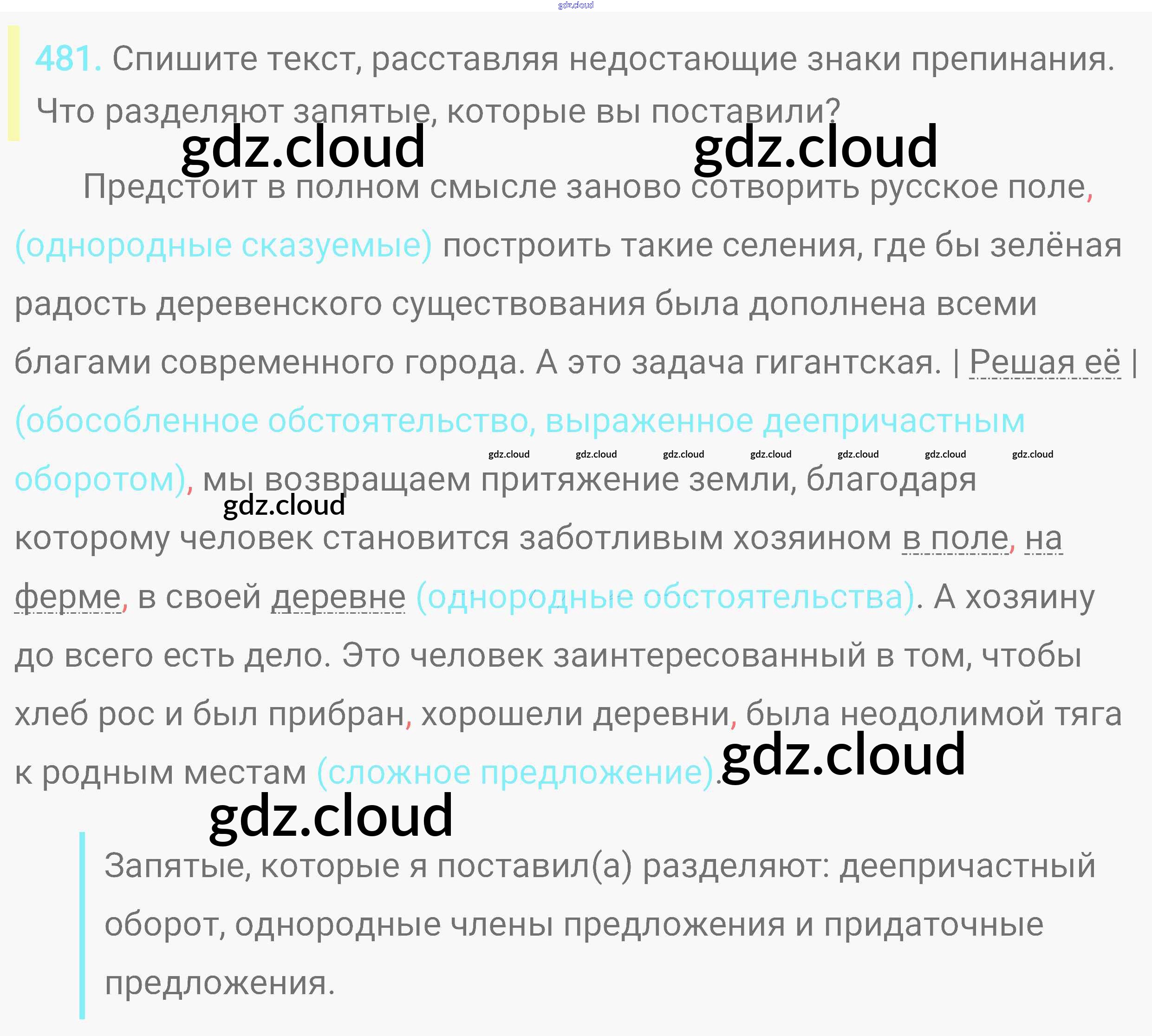 Ответ на задание 481 Практика Русский язык за 8 (восьмой) класс Пичугов, Еремеева, Купалова, Леденева Вертикаль 2016, 2022