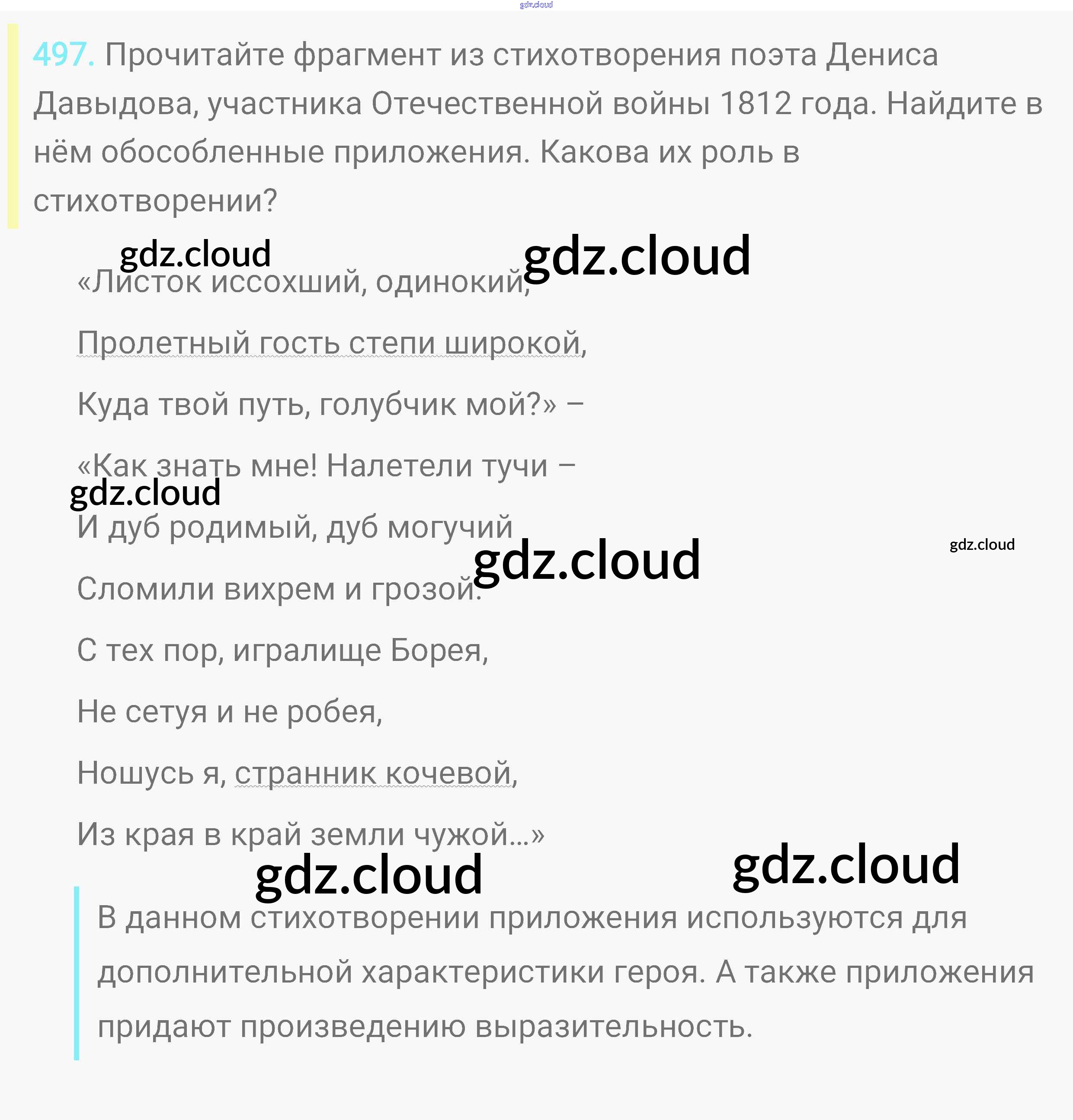 Ответ на задание 497 Практика Русский язык за 8 (восьмой) класс Пичугов, Еремеева, Купалова, Леденева Вертикаль 2016, 2022