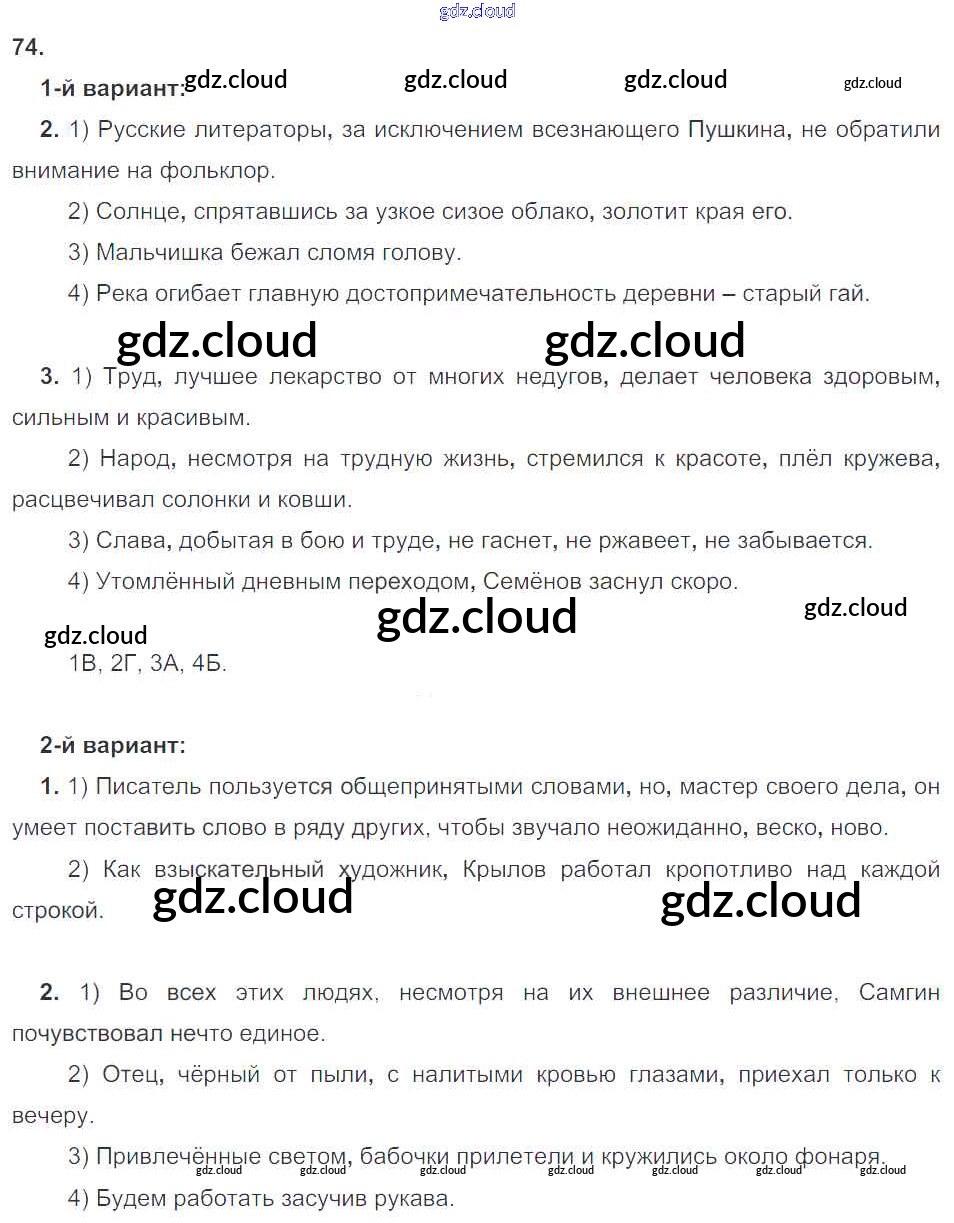 Ответ на задание 74 Рабочая тетрадь Русский язык за 8 (восьмой) класс Ефремова 2018, 2022