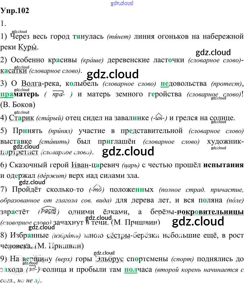 Ответ на задание 102 Учебник Русский язык за 8 (восьмой) класс Разумовская, Львова, Капинос, Львов Вертикаль 2013