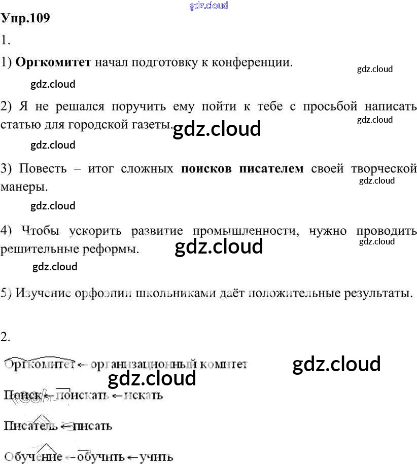 Ответ на задание 109 Учебник Русский язык за 8 (восьмой) класс Разумовская, Львова, Капинос, Львов Вертикаль 2013