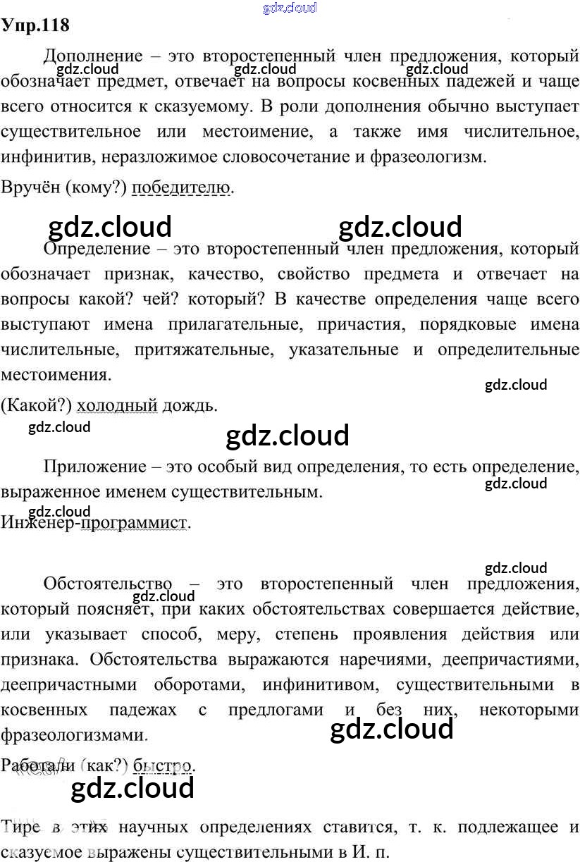 Ответ на задание 118 Учебник Русский язык за 8 (восьмой) класс Разумовская, Львова, Капинос, Львов Вертикаль 2013