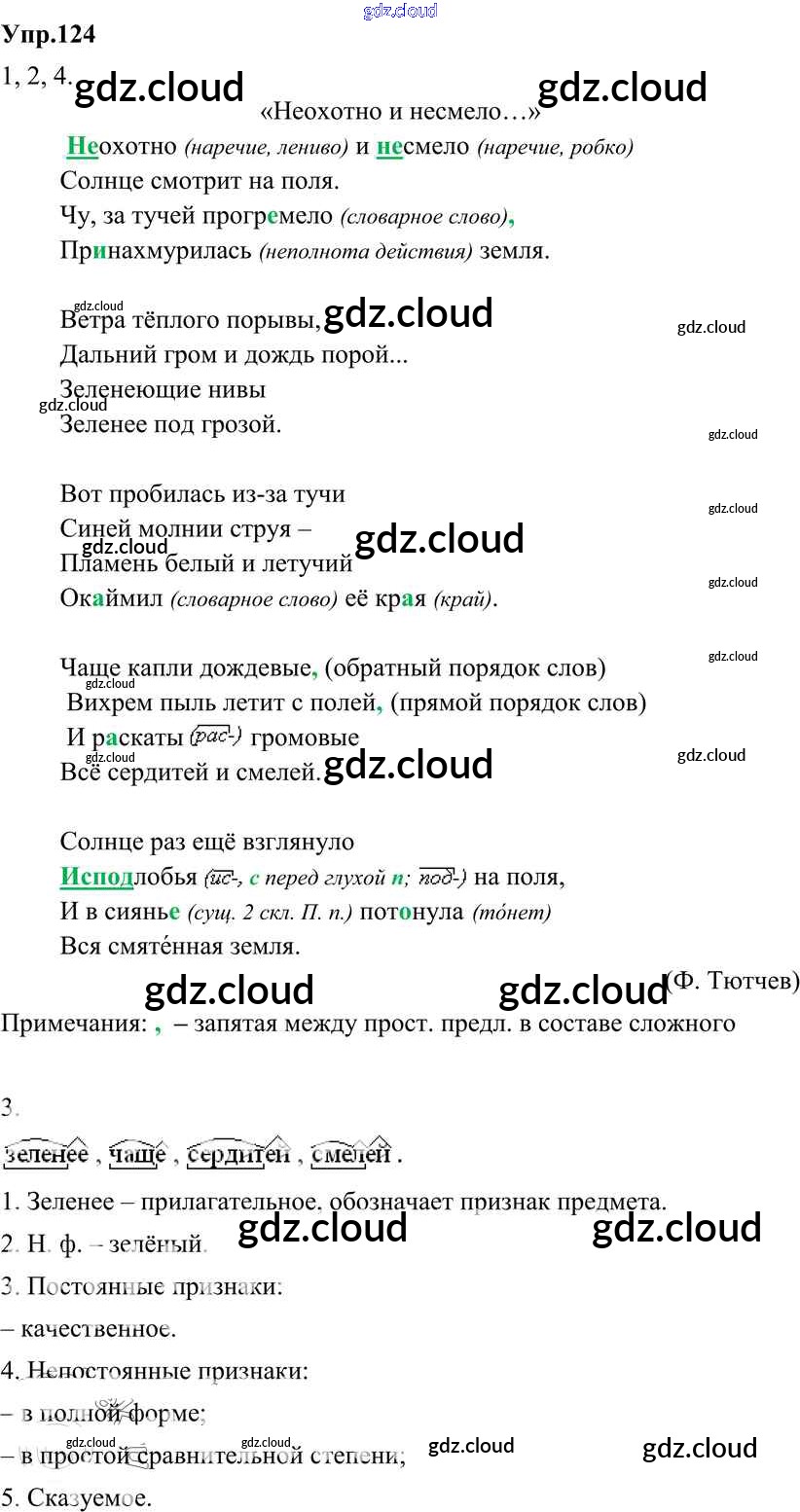 Ответ на задание 124 Учебник Русский язык за 8 (восьмой) класс Разумовская, Львова, Капинос, Львов Вертикаль 2013