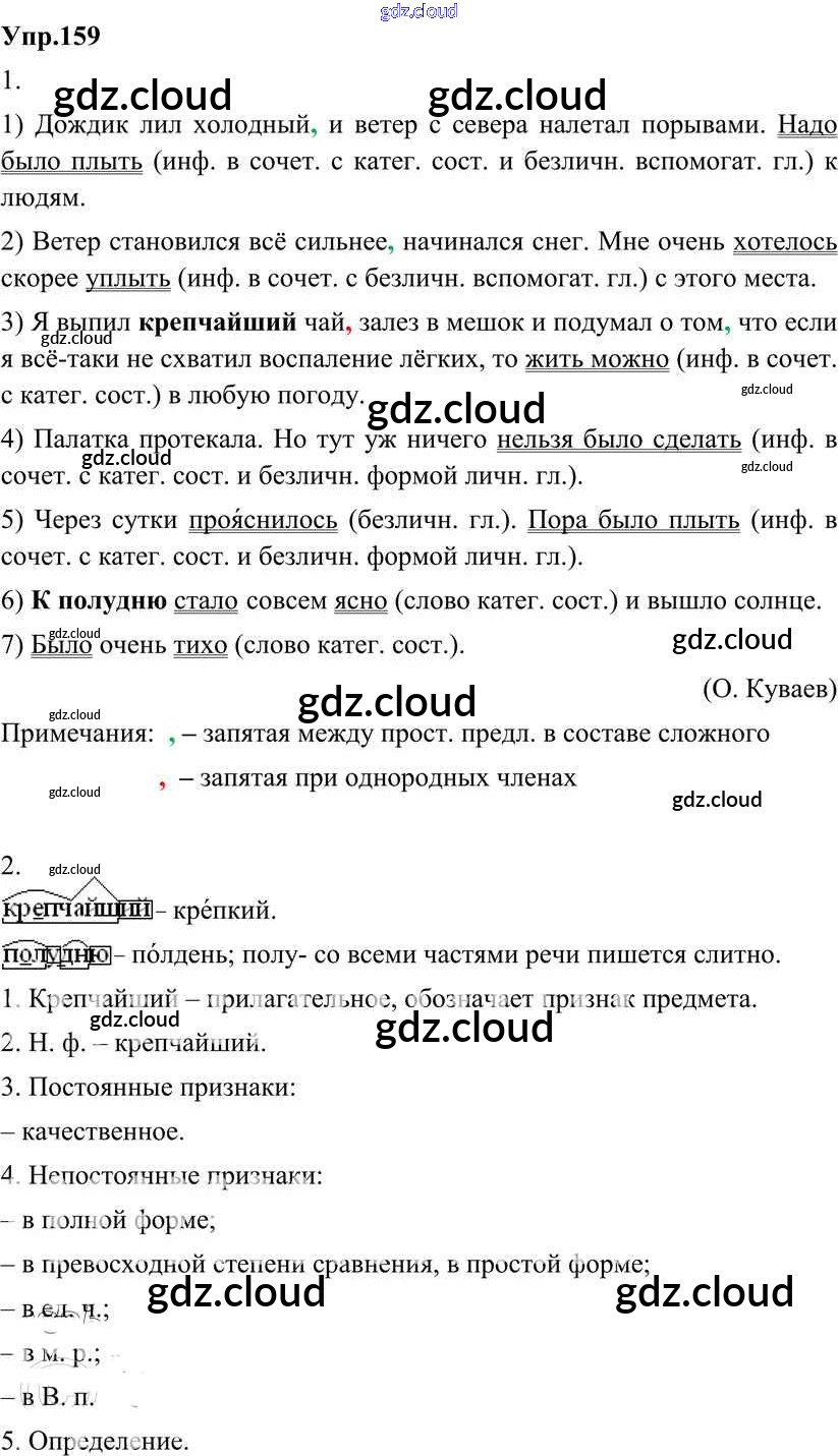 Ответ на задание 159 Учебник Русский язык за 8 (восьмой) класс Разумовская, Львова, Капинос, Львов Вертикаль 2013