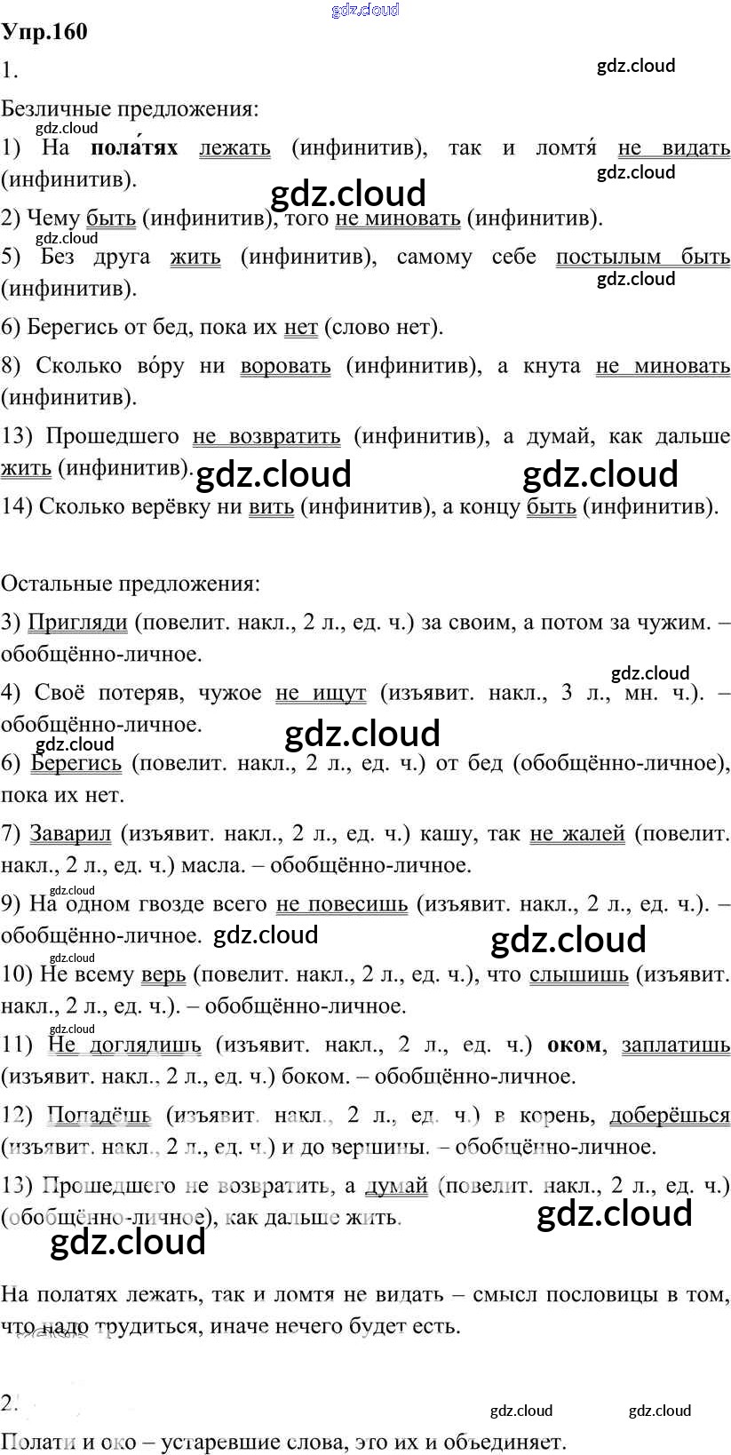 Ответ на задание 160 Учебник Русский язык за 8 (восьмой) класс Разумовская, Львова, Капинос, Львов Вертикаль 2013