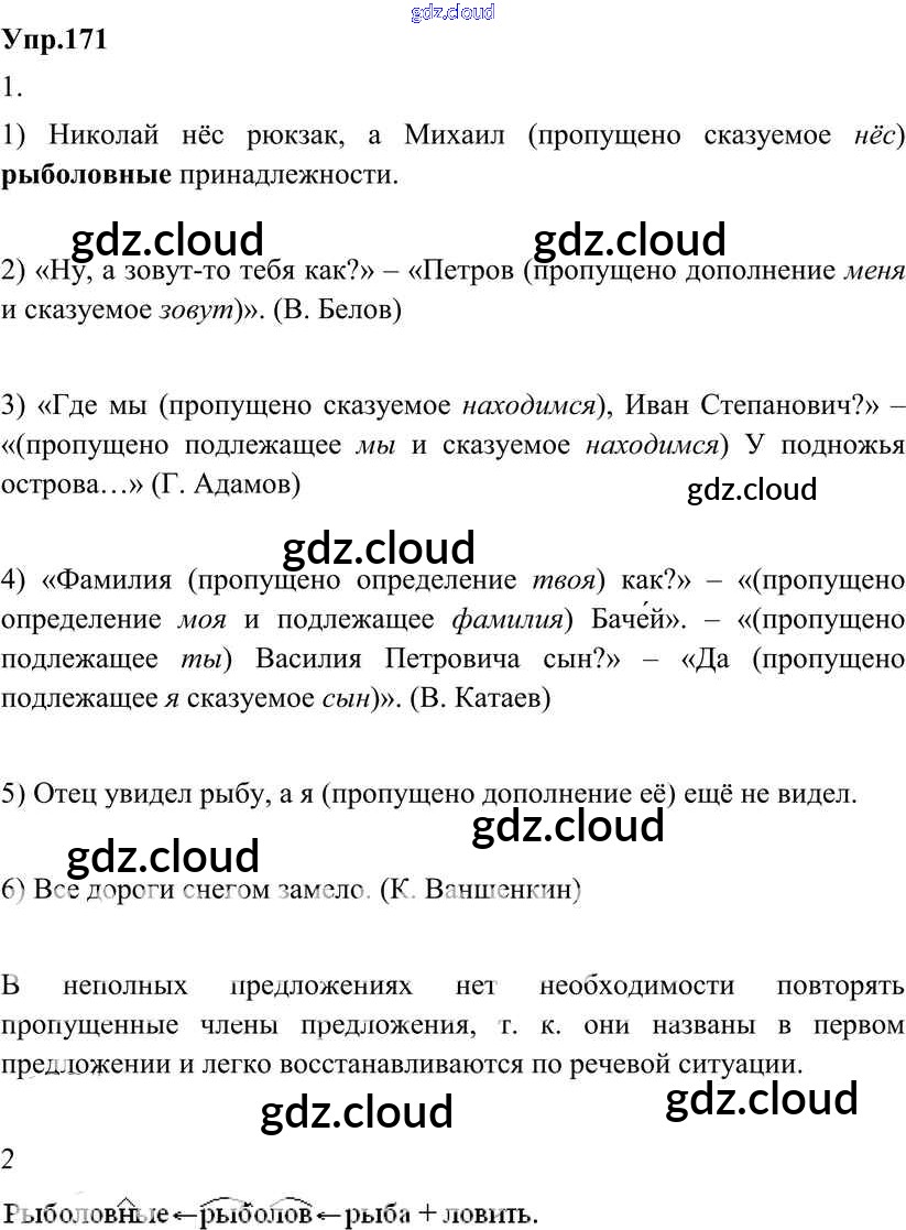 Ответ на задание 171 Учебник Русский язык за 8 (восьмой) класс Разумовская, Львова, Капинос, Львов Вертикаль 2013