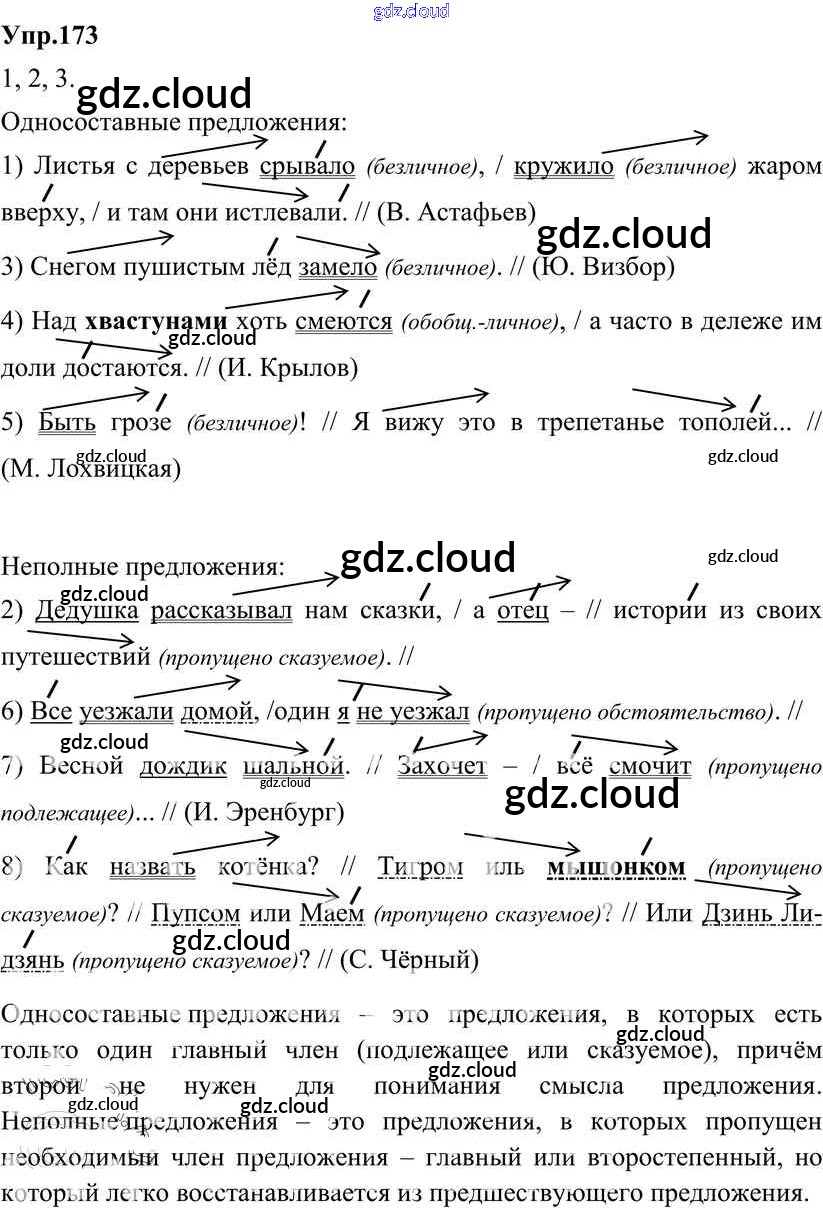 Ответ на задание 173 Учебник Русский язык за 8 (восьмой) класс Разумовская, Львова, Капинос, Львов Вертикаль 2013