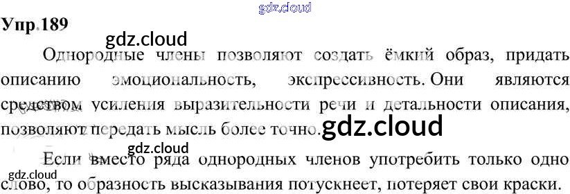 Ответ на задание 189 Учебник Русский язык за 8 (восьмой) класс Разумовская, Львова, Капинос, Львов Вертикаль 2013