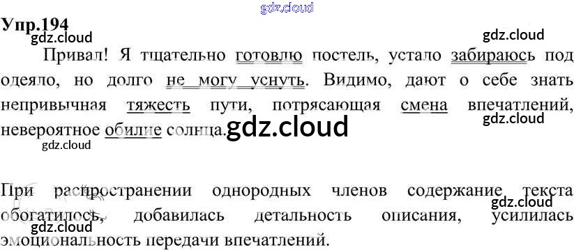 Ответ на задание 194 Учебник Русский язык за 8 (восьмой) класс Разумовская, Львова, Капинос, Львов Вертикаль 2013