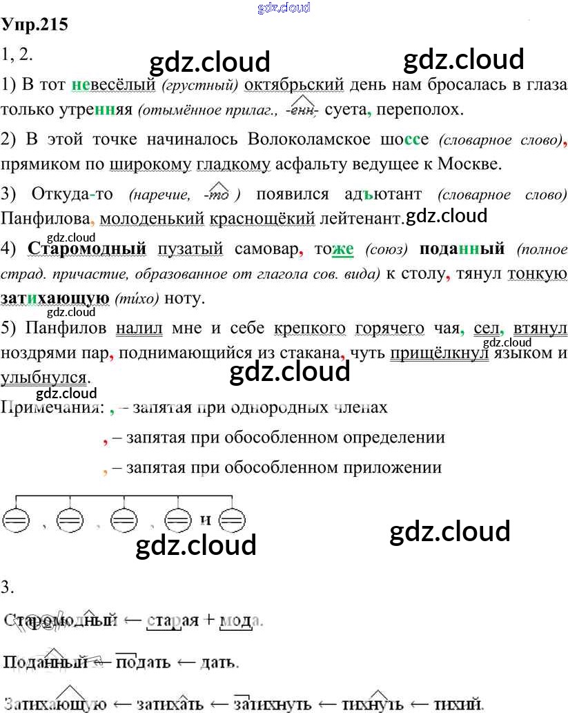 Ответ на задание 215 Учебник Русский язык за 8 (восьмой) класс Разумовская, Львова, Капинос, Львов Вертикаль 2013