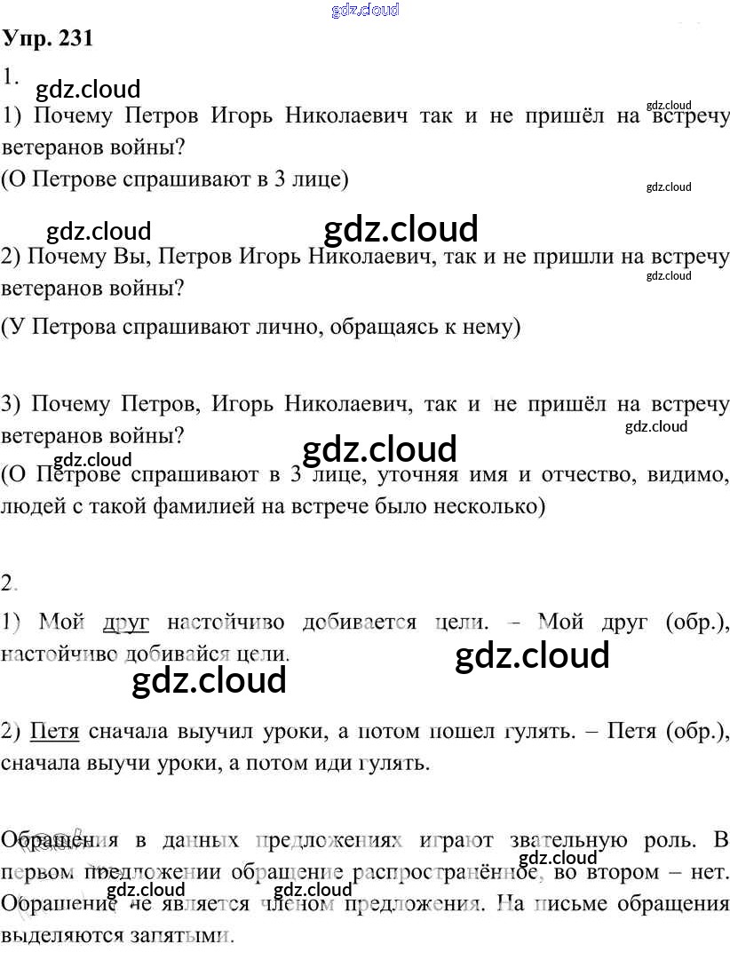 Ответ на задание 231 Учебник Русский язык за 8 (восьмой) класс Разумовская, Львова, Капинос, Львов Вертикаль 2013
