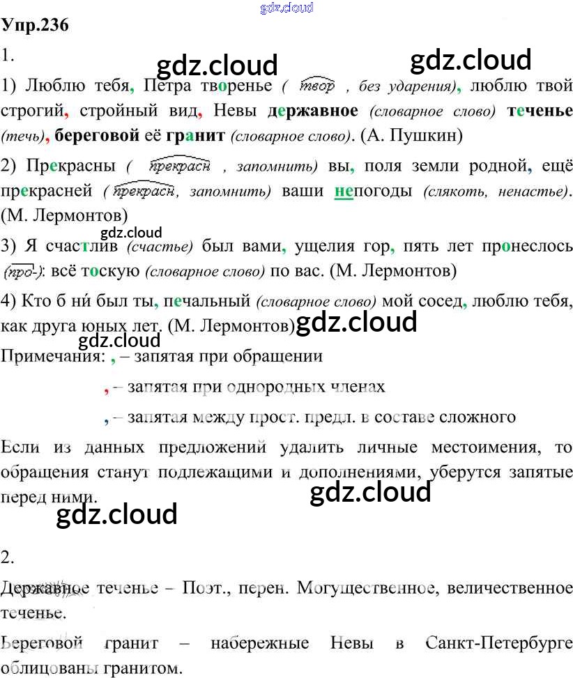 Ответ на задание 236 Учебник Русский язык за 8 (восьмой) класс Разумовская, Львова, Капинос, Львов Вертикаль 2013