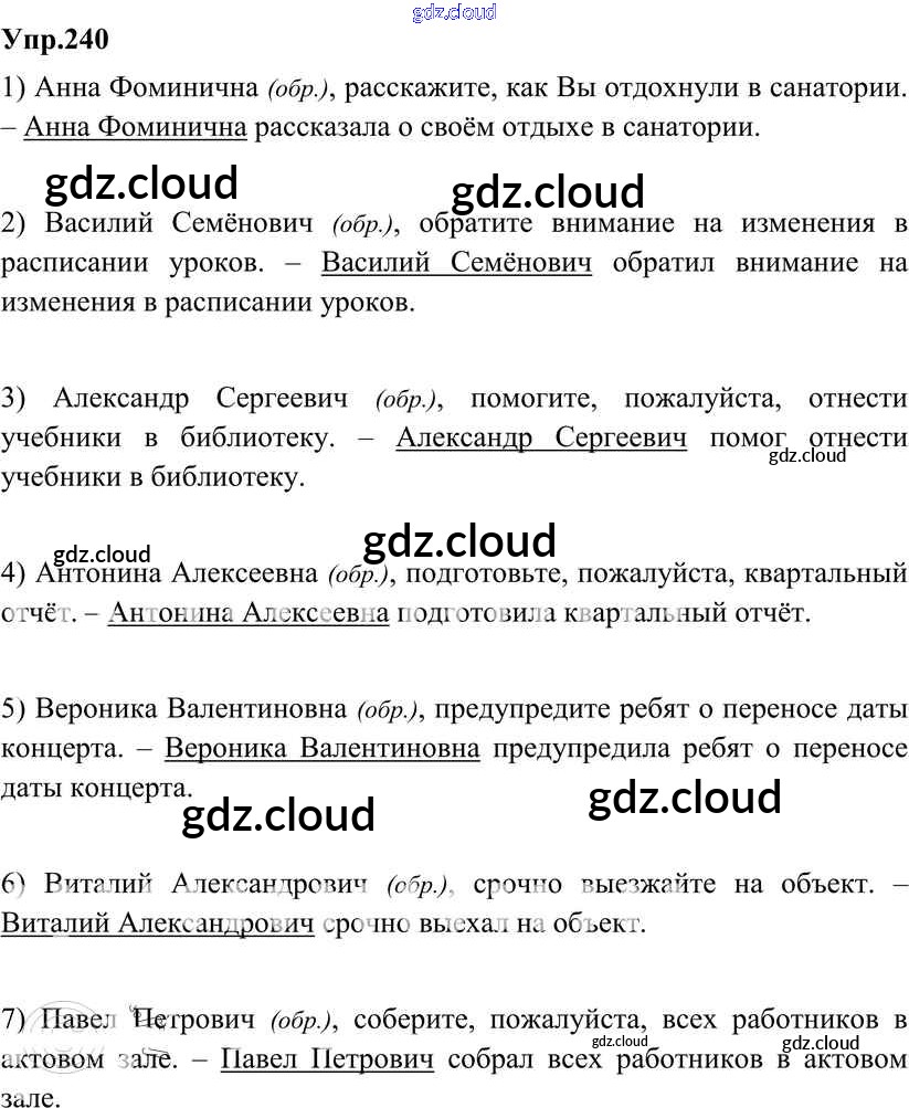 Ответ на задание 240 Учебник Русский язык за 8 (восьмой) класс Разумовская, Львова, Капинос, Львов Вертикаль 2013