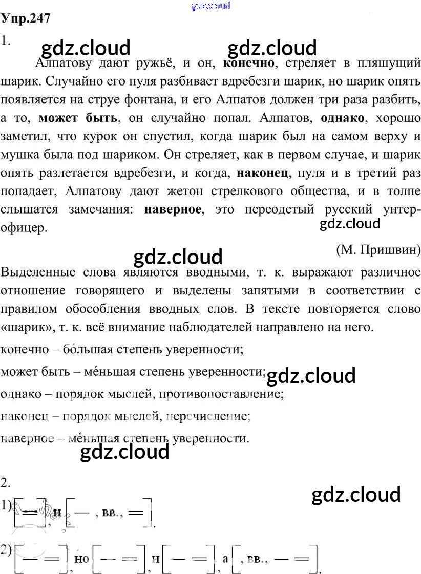 Ответ на задание 247 Учебник Русский язык за 8 (восьмой) класс Разумовская, Львова, Капинос, Львов Вертикаль 2013