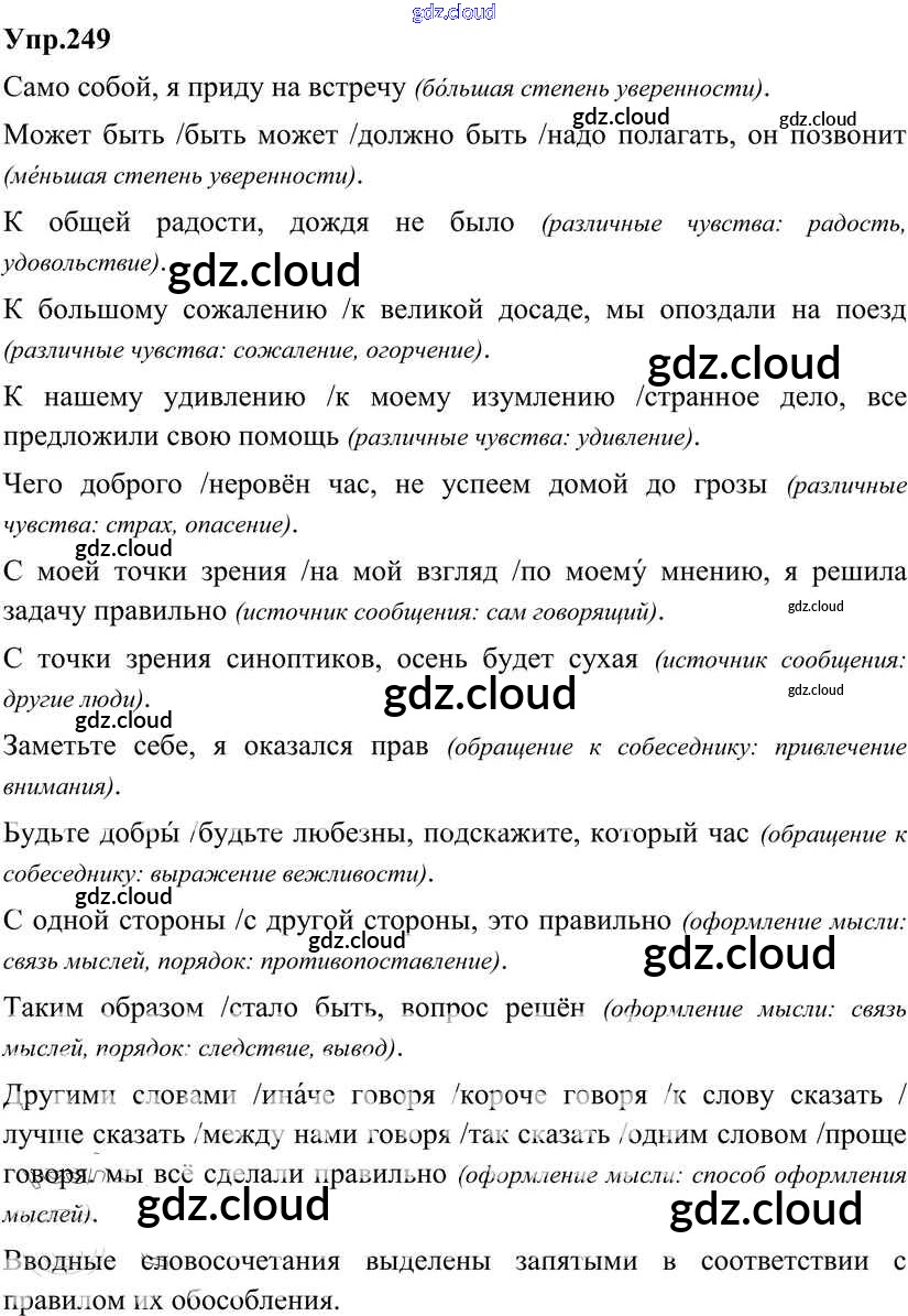 Ответ на задание 249 Учебник Русский язык за 8 (восьмой) класс Разумовская, Львова, Капинос, Львов Вертикаль 2013