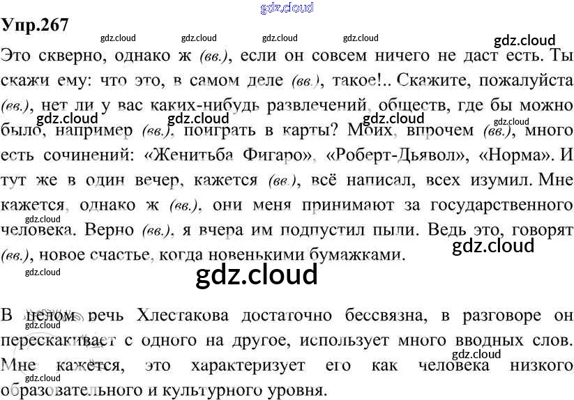 Ответ на задание 267 Учебник Русский язык за 8 (восьмой) класс Разумовская, Львова, Капинос, Львов Вертикаль 2013