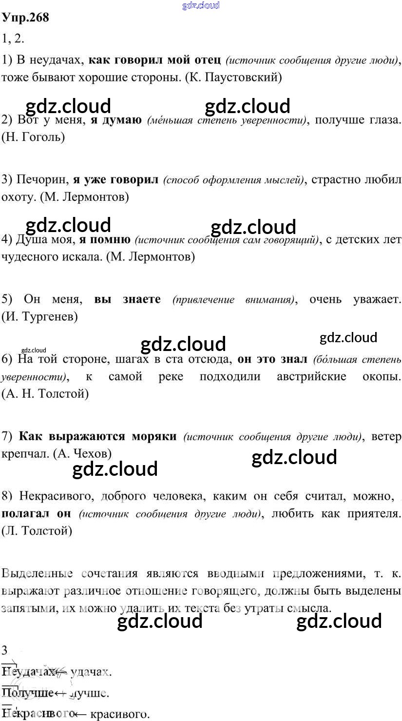 Ответ на задание 268 Учебник Русский язык за 8 (восьмой) класс Разумовская, Львова, Капинос, Львов Вертикаль 2013