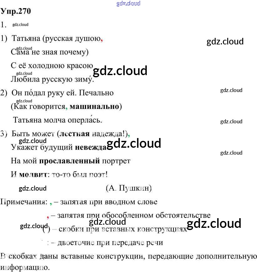 Ответ на задание 270 Учебник Русский язык за 8 (восьмой) класс Разумовская, Львова, Капинос, Львов Вертикаль 2013