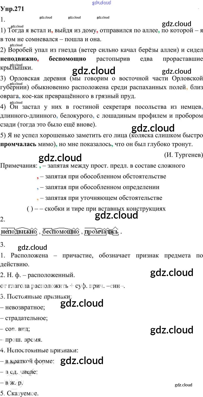Ответ на задание 271 Учебник Русский язык за 8 (восьмой) класс Разумовская, Львова, Капинос, Львов Вертикаль 2013